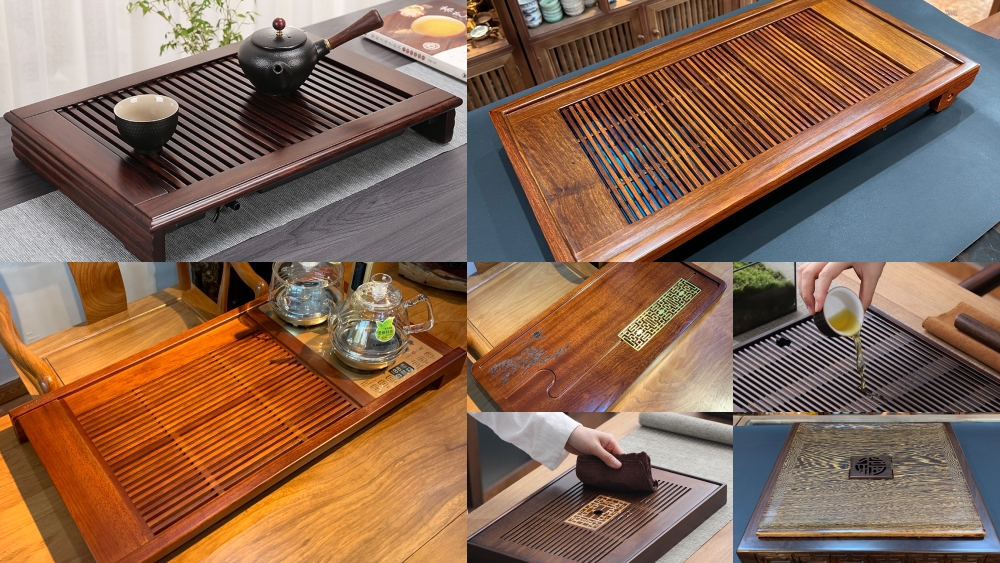 Vừa là vật dụng, vừa là tác phẩm nghệ thuật tôn vinh không gian trà. Mỗi khay trà gỗ được tuyển chọn kỹ, dày dặn chắc chắn, mang đến trải nghiệm tuyệt vời cho người thưởng trà.