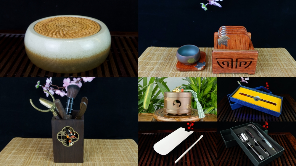 Bộ trà cụ, đế lót ấm- ly, chổi trà, khăn lau ấm... những sản phẩm tiểu tiết mang đến trải nghiệm thưởng trà được chỉn ch, chuyên nghiệp.