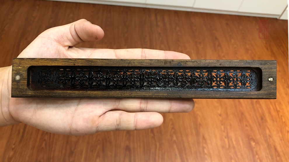 Đặc biệt, khi dùng nhang trầm chuẩn 1 thơi gian, nắp của hộp xông trầm sẽ bám dầu trầm rất thơm, chỉ cần đứng gần hộp xông đã ngửi thấy mùi trầm khá đậm. Dưới đây là 1 mẫu nắp hộp mà Hương Vân Cát đã dùng hơn 1 năm.