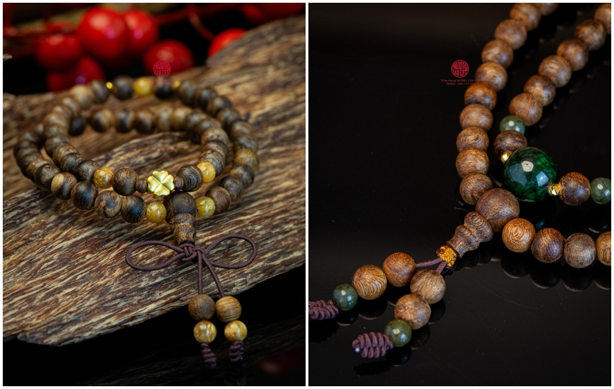 Ngoài các mẫu vòng đơn, dòng trầm hương 108 hạt kết hợp charm cũng rất được lòng các quý cô và doanh nhân bởi vẻ đẹp quý phái. Những chuỗi vòng trầm hương 108 hạt khi được quấn nhiều vòng quanh cổ tay sẽ tạo nên điểm nhấn thời trang vô cùng khác biệt. Mỗi hạt trong chuỗi trầm hương 108 hạt chuẩn tự nhiên đều chứa đựng năng lượng tích cực, mang lại sự bình an cho người sở hữu.