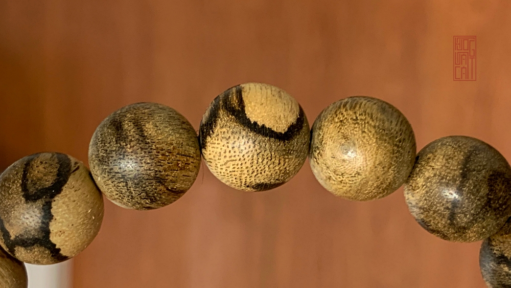 Ảnh minh họa đốm bông trên hạt trầm tereng có tông màu nâu vàng , hàng này chỉ cần xử lý màu cho đậm hơn là khá giống trầm Pursat