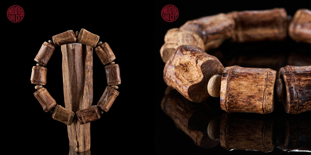 - Vòng trầm hương khắc đốt trúc tự nhiên theo thế phôi rất đẹp, hợp với tay nam, được gia công từ phôi trầm Bruney chất lượng rục nhiều dầu rất tốt, được thợ lành nghề nương theo thế phôi có sẵn mà khắc thành đốt trúc rất chân thực và thẩm mỹ.